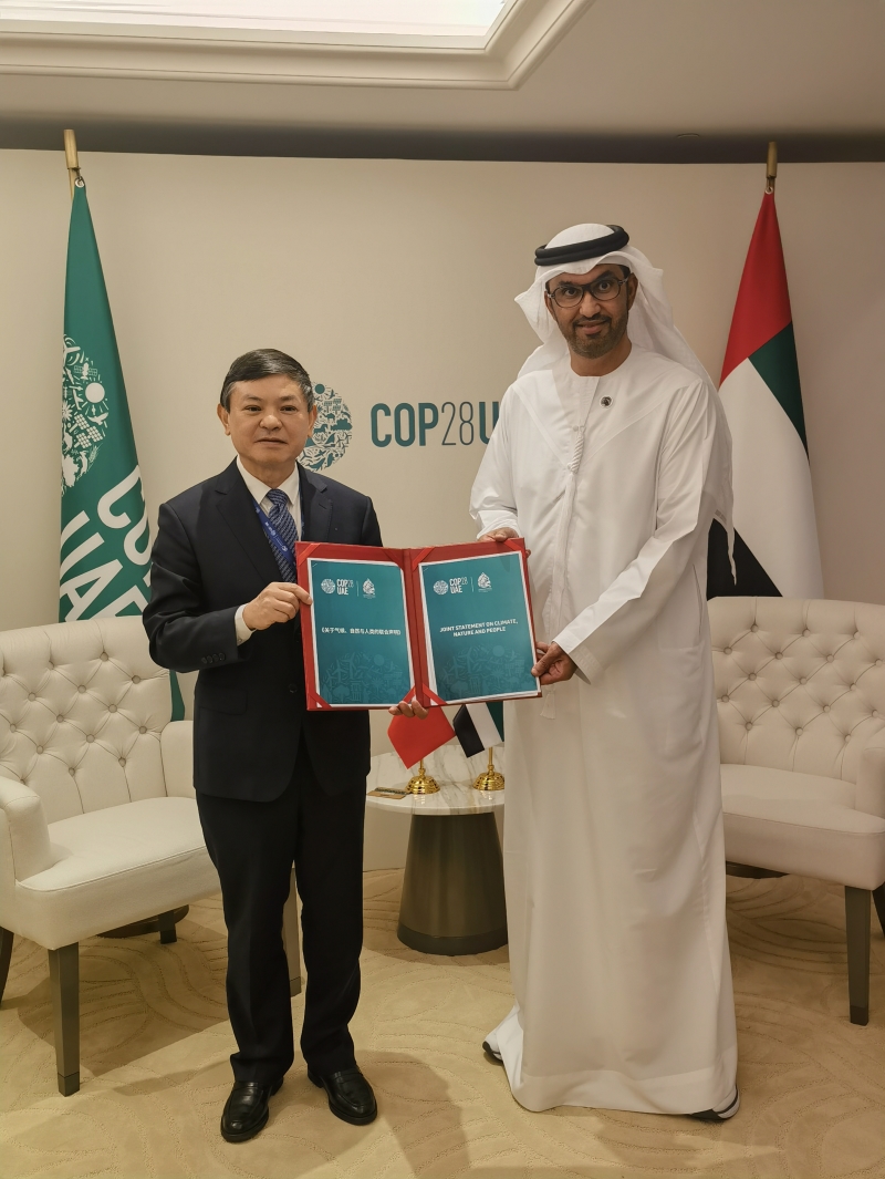 大會期間,黃潤秋與COP28主席蘇爾坦舉行會見。黃潤秋表示,中方期待COP28遵循《聯(lián)合國氣候變化框架公約》及其《巴黎協(xié)定》目標(biāo)、原則及相關(guān)安排,聚焦行動與合作,敦促發(fā)達(dá)國家提供資金、技術(shù)及能力建設(shè)等方面支持。蘇爾坦感謝中方的全力支持,表示愿與中方加強(qiáng)交流聯(lián)系,攜手推動COP28取得成功。